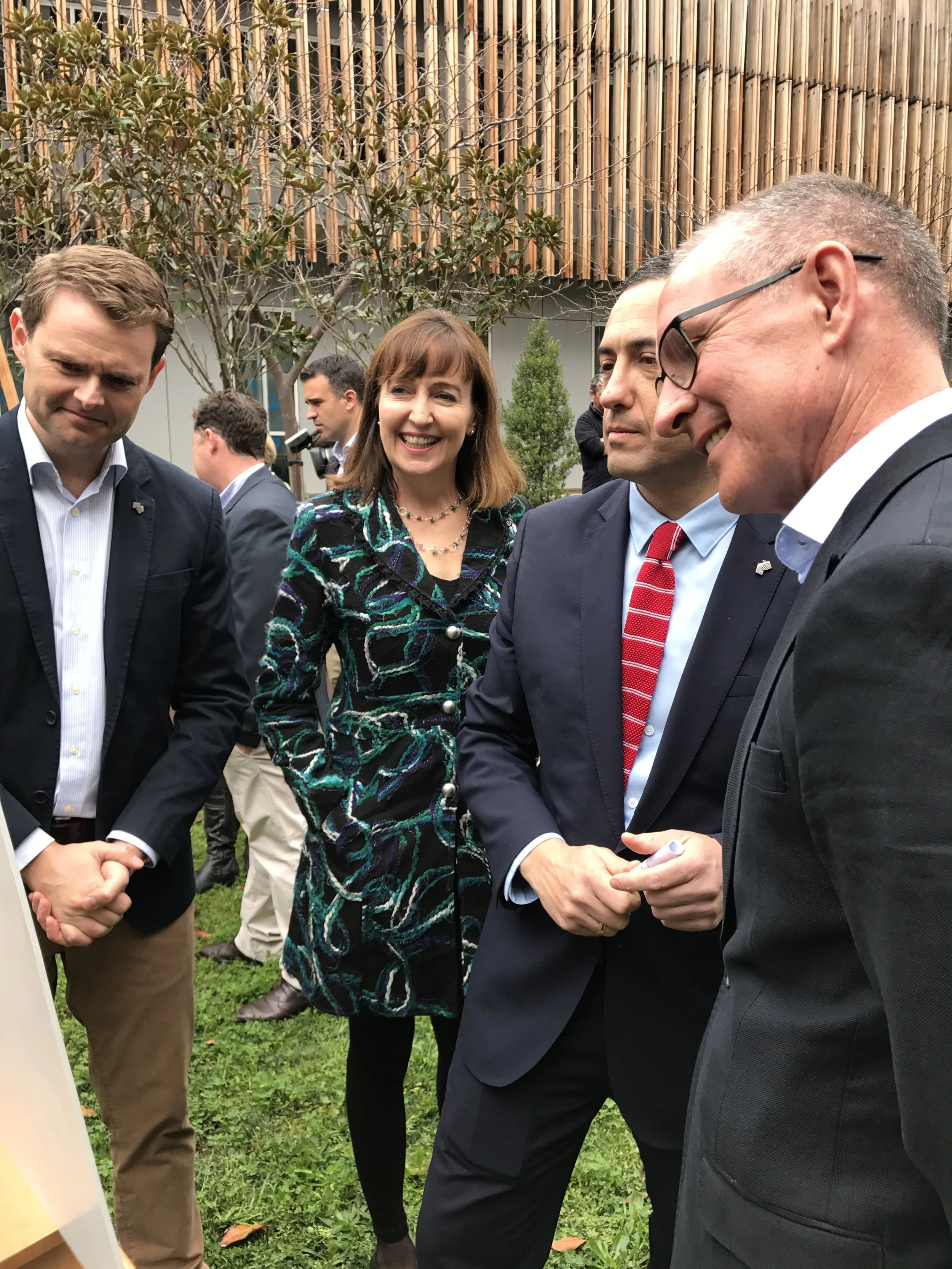 Premier jay Weatherill MP, treasure tom Koutsantonis mp, stephen mullighan mp, state member for lee and susan close mp, state member for port Adelaide inspect the designs for the qeh redevelopment